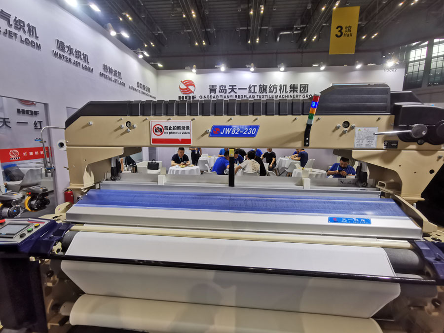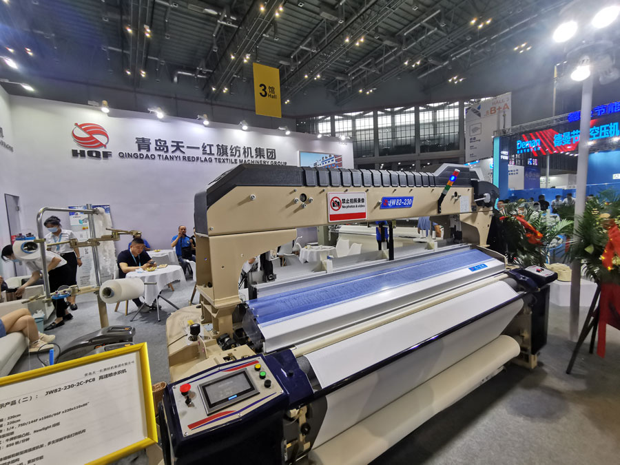 天一紅旗在2020紡機聯合展上展出了JA92-400高速寬幅噴氣織機和JW82-230高速噴水織機。