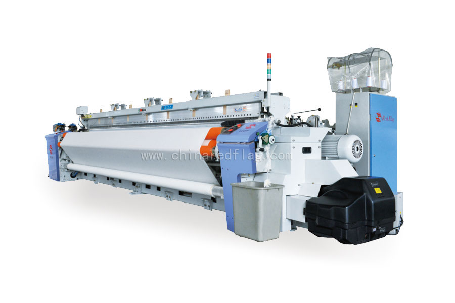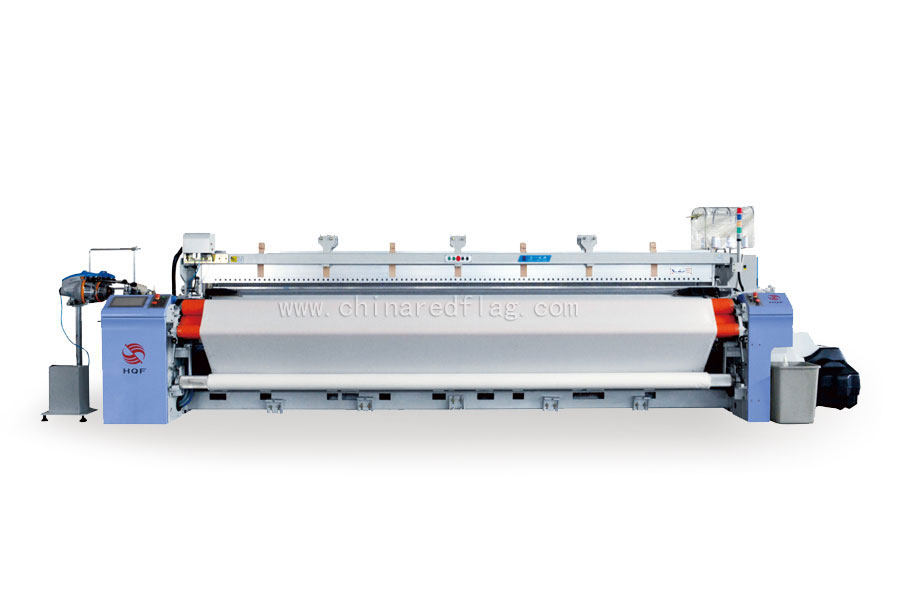 天一紅旗一直在對噴氣織機寬幅織造方面進行探索與研究,460織機采用左右雙織軸,變氣壓,變間距的副噴接力引緯方式,力求在較高入緯率下實現寬幅高效引緯。
